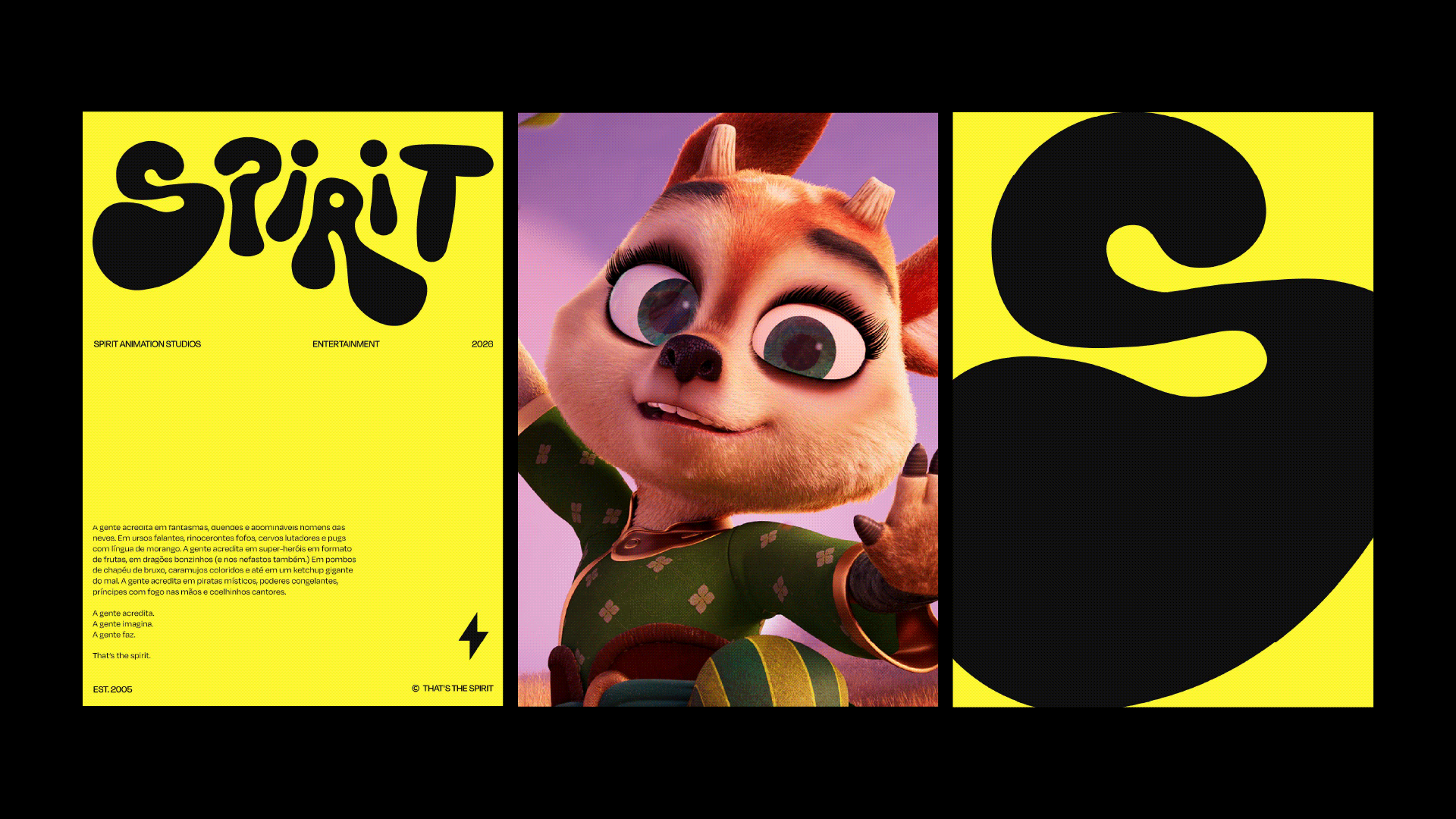Rebranding of Spirit Animation, an animation studio with a strong focus on storytelling, emotion, and character-driven narratives. The project aimed to translate its human, playful, and expressive essence into a contemporary visual system, reinforcing its positioning as a creative and original studio in the entertainment industry.
